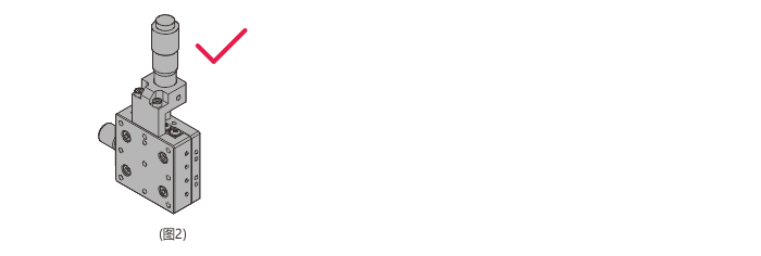 如(圖2)所示,因通過微分頭重,故平臺(tái)臺(tái)面不會(huì)滑落。但是,若在臺(tái)面上施加超過規(guī)定的負(fù)載時(shí),精度回下降,甚至可能損壞,請(qǐng)盡量避免。